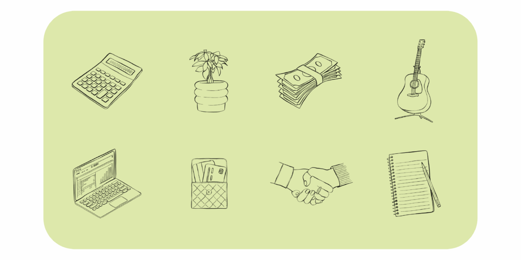 Always one of my favorite parts of any brand. While the logo system was intentionally clean and tech-forward, we had a lot of fun leaning into a hand-drawn style for the illustrations. These added personality and gave us space to reference Liz’s interests outside of her business—like her love of music—making the brand feel more human and well-rounded.